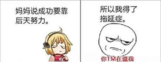 很多人都把“拖延癥”這個詞給擴大化了。許多積極的推遲,必要的推遲,都被你的哥們姐們貼上拖延癥的標簽,然后聲討一番。這其實早就不是個拖延癥問題了,這是個時尚問題??纯次⒉┚椭懒?,眾多名人對號入座,“拖延癥”已成為時髦的象征。再加上,在這個“精神疾病N多款,總有一款適合你”的時代,要沒個拉風的心理毛病,你都不好意思出門跟人打招呼。于是,我們的視野中,就大有一副“全民拖延”之勢。
