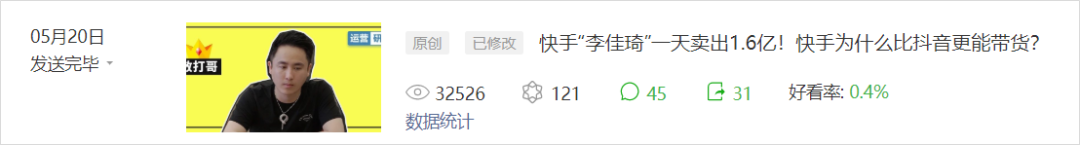 比如我們?cè)趯懣焓稚⒋蚋绲臅r(shí)候,怕用戶不知道散打哥是誰,于是就蹭熱點(diǎn)名人“李佳琦”,把散打哥比作快手版“李佳琦”,標(biāo)題后半句提出用戶比較關(guān)心的話題:快手為什么比抖音帶貨?把文章閱讀量推到了一個(gè)小高潮。