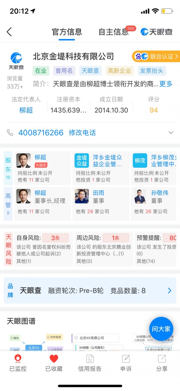 就算你不知道從哪兒找信息,不知道如何通過(guò)年報(bào)判別一個(gè)公司的真?zhèn)魏脡模詈?jiǎn)單的途徑:打開手機(jī),下載一個(gè)天眼查app,上面有全國(guó)1.8億多家公司的信息,實(shí)時(shí)更新,而天眼查所有數(shù)據(jù)都是國(guó)家公開數(shù)據(jù),且獲得央行認(rèn)證的企業(yè)征信資質(zhì),所以這上面的信息自然權(quán)威可靠。只要搜一下對(duì)方的公司或者老板姓名,單查詢功能就已經(jīng)篩選掉了無(wú)數(shù)空頭皮包公司。