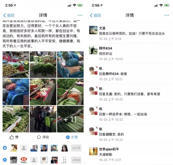 而在帖子的下方,有數(shù)萬(wàn)人和她互動(dòng),有一位網(wǎng)友回復(fù)她:我是在云南種菜的,加油!只要不死總會(huì)出頭!她回復(fù)道:是的,只要活著,都有希望。