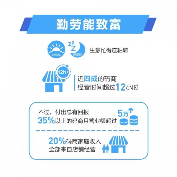 他們的工作時(shí)間非常長(zhǎng),超過(guò)40%每天營(yíng)業(yè)時(shí)間超過(guò)12小時(shí),35%是12-18小時(shí)之間,甚至有6%工作市場(chǎng)超過(guò)18小時(shí)??梢哉f(shuō)是用生命在工作,而他們大多數(shù)是沒(méi)有雙休的概念的。