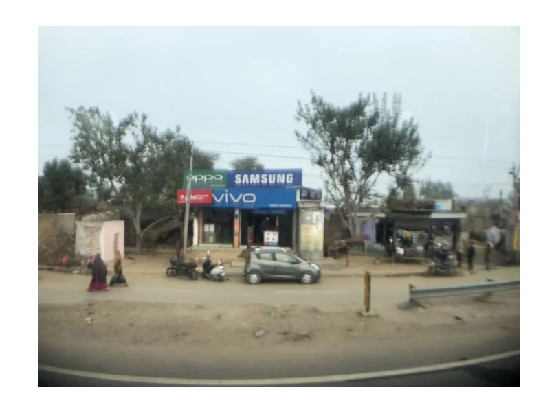 以下這張圖是我二月份在印度的一個(gè)破敗的小鎮(zhèn)拍到的,當(dāng)時(shí)車速比較快,所以比較糊。(對(duì)比之下,我國(guó)的建設(shè)明顯高幾個(gè)段位)VIVO和OPPO在整個(gè)印度的覆蓋也是做得相當(dāng)好,甚至還冠名了地鐵站,整個(gè)地鐵站曬成了VIVO藍(lán)色。