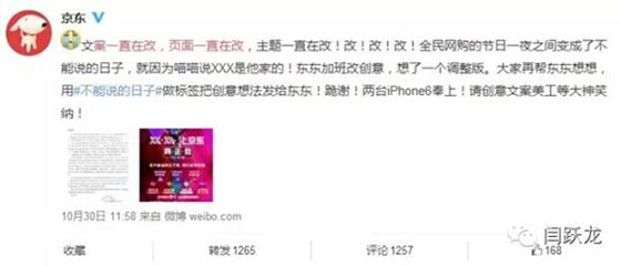再看個(gè)案例,阿里注冊(cè)雙十一商標(biāo)后,京東、國(guó)美、蘇寧等眾多電商玩家,圍繞“改”這一主題,做的內(nèi)容著實(shí)搶風(fēng)頭不小。這些不能使用商標(biāo)的家伙們,當(dāng)聽(tīng)到廣播電視里幾個(gè)嘉賓在唾沫橫飛地討論雙十一的商標(biāo)是否可以注冊(cè)時(shí),心里都爽死了!
