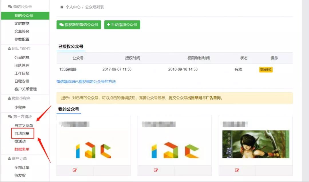 授權(quán)前請(qǐng)備份好你在公眾平臺(tái)設(shè)置的菜單欄、關(guān)鍵詞回復(fù)等素材