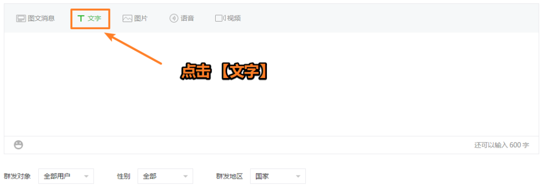 1、咱們一般都是新建圖文,很少使用新建文字,三兒這次就使用了新建文字功能。在微信公眾號中【新建群發(fā)】,選擇【文字】。