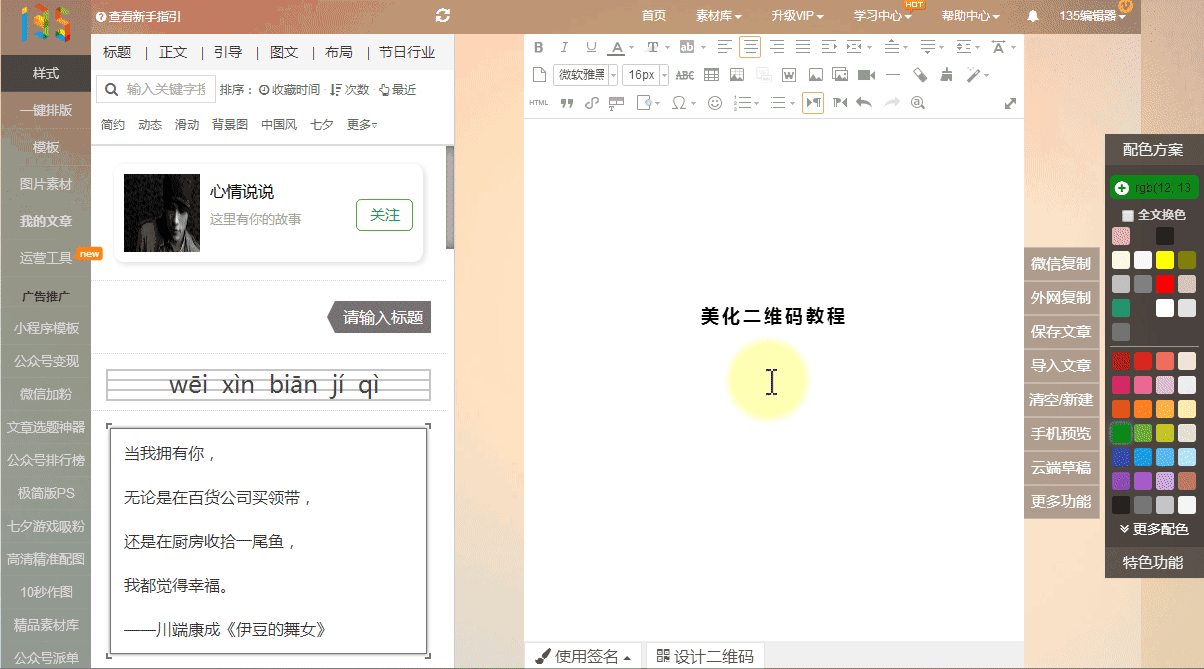 功能強(qiáng)大的編輯器,怎么可能會(huì)沒有設(shè)計(jì)二維碼的功能呢?此功能在135編輯器主頁面下方的中間位置。