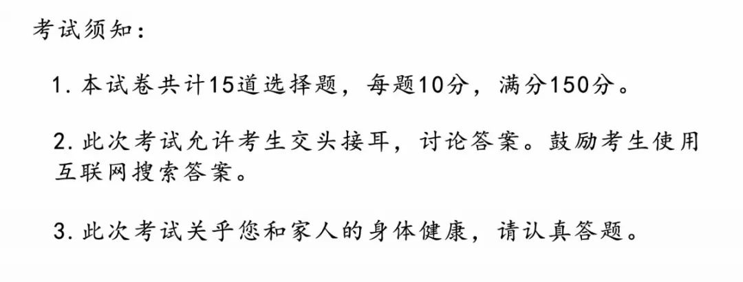 三兒在做了一番調查以后,整理出一份新型冠狀病毒防治試卷,反正在家閑著也是閑著,來一起做題吧!