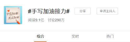 最近兩天,#手寫加油接力#這一個話題在網(wǎng)上火了起來,截止目前,這個話題在網(wǎng)上已經有了 9.1 億的閱讀量,290 萬的討論熱度。