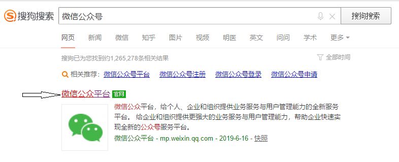 打開瀏覽器,輸入框搜索微信公眾號(hào),然后找到微信公眾號(hào)平臺(tái)官網(wǎng)并打開它。