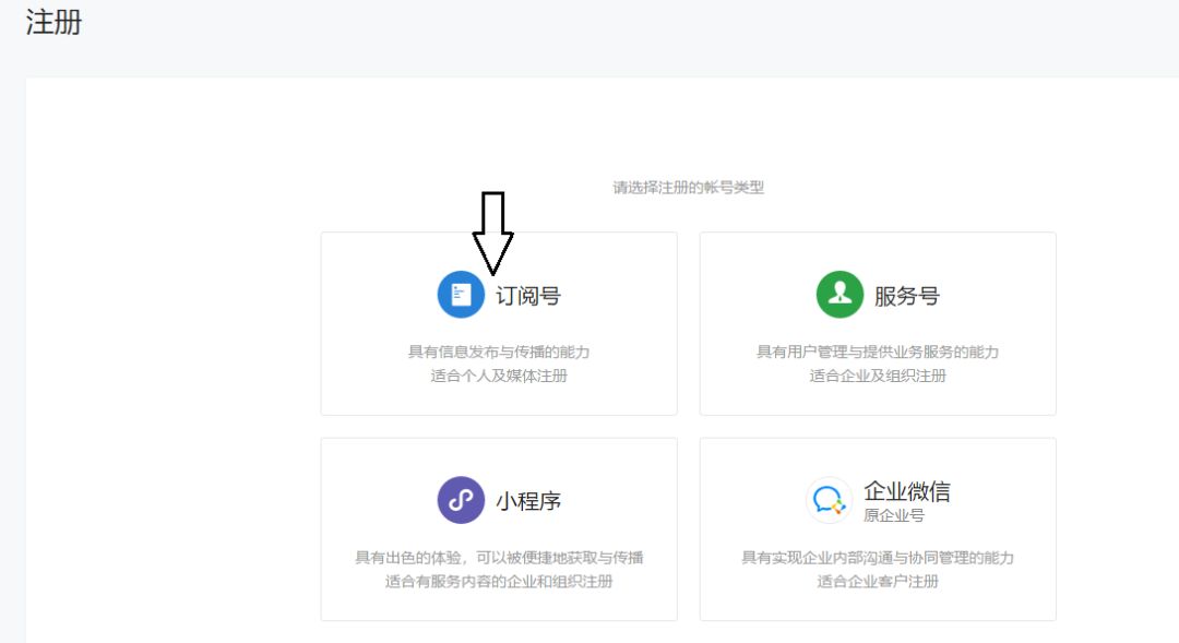 打開以后選擇注冊(cè)的賬號(hào)類型是訂閱號(hào),點(diǎn)擊打開它。