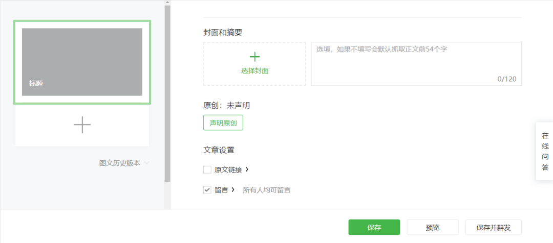 拉到最后添加封面圖,然后填寫選填部分的內(nèi)容,如果這個(gè)選填你不寫,就會(huì)自動(dòng)幫你選取文章開頭的文字。
