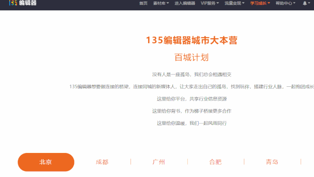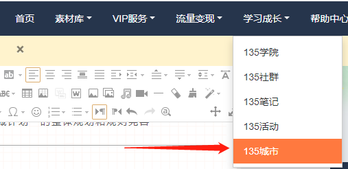 登錄135編輯器官網(wǎng),點(diǎn)擊『學(xué)習(xí)成長』——『135城市』