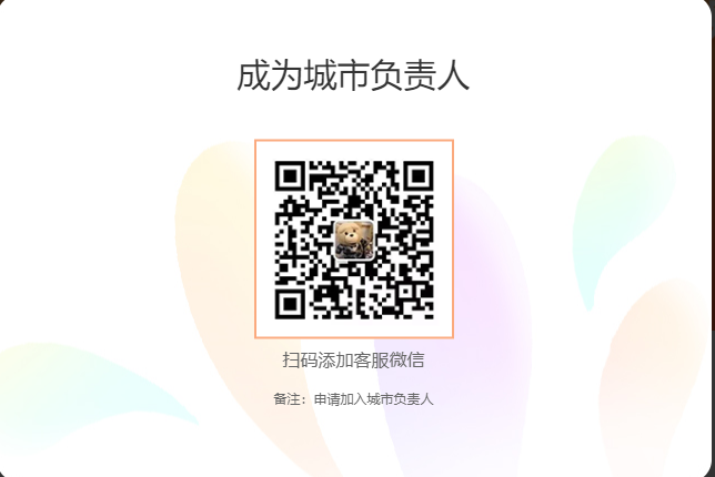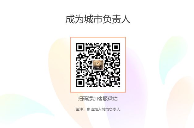 4.掃碼添加客服,備注:申請加入城市負(fù)責(zé)人,報名成功。