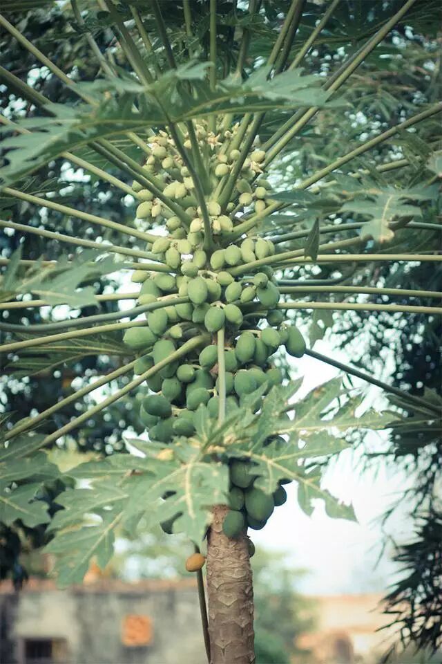下面這張照片是規(guī)整的中心構(gòu)圖,為了讓其更具美感,我們可以只保留它的一部分,用以少見多,以小見大的方式來呈現(xiàn)這棵木瓜樹之多之大。