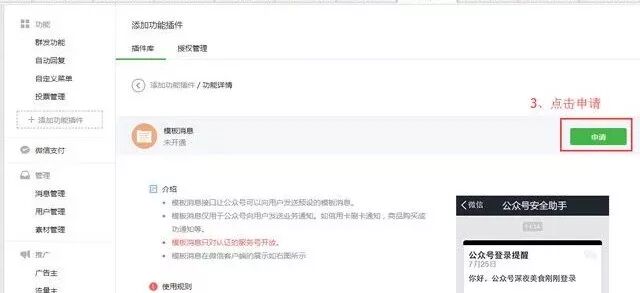 有一點需要說明的是,模版消息的功能需要借助第三方平臺才能使用,對此,可以借助【運(yùn)營指南】同步模版消息配合使用。