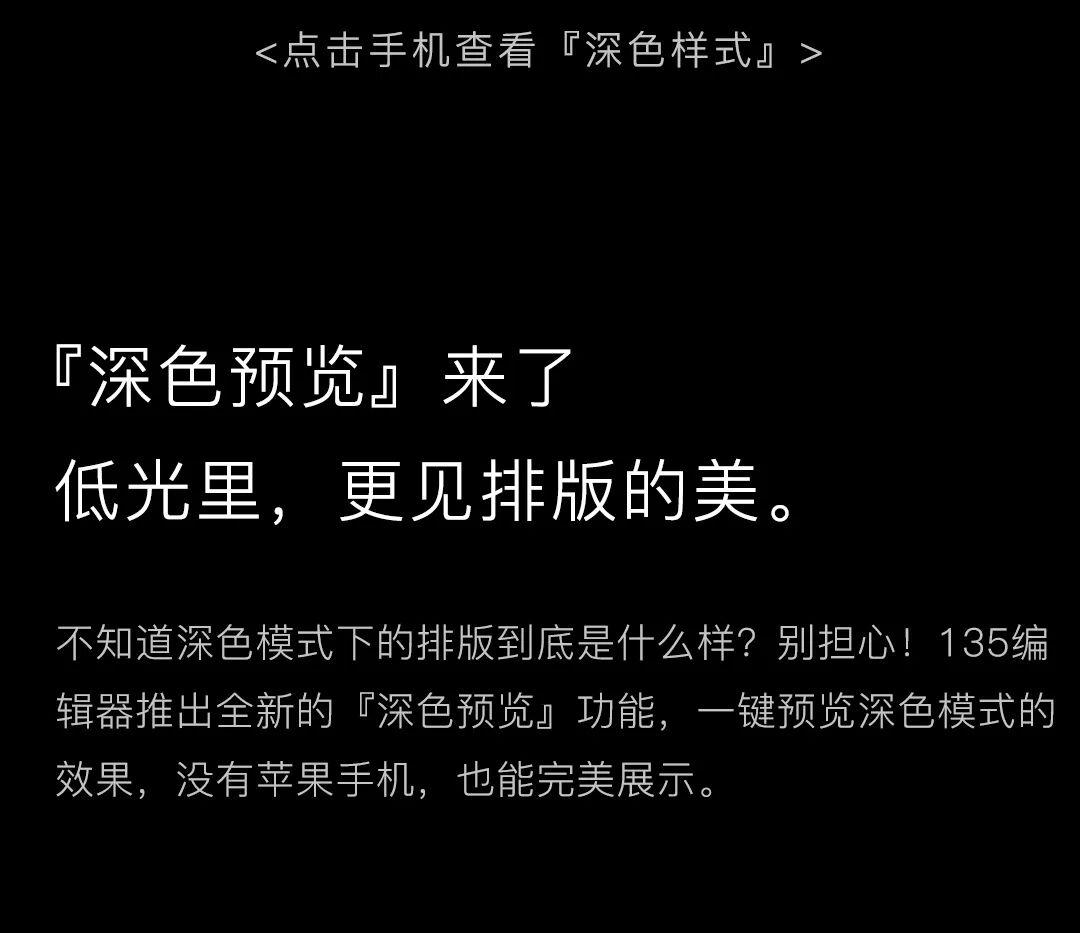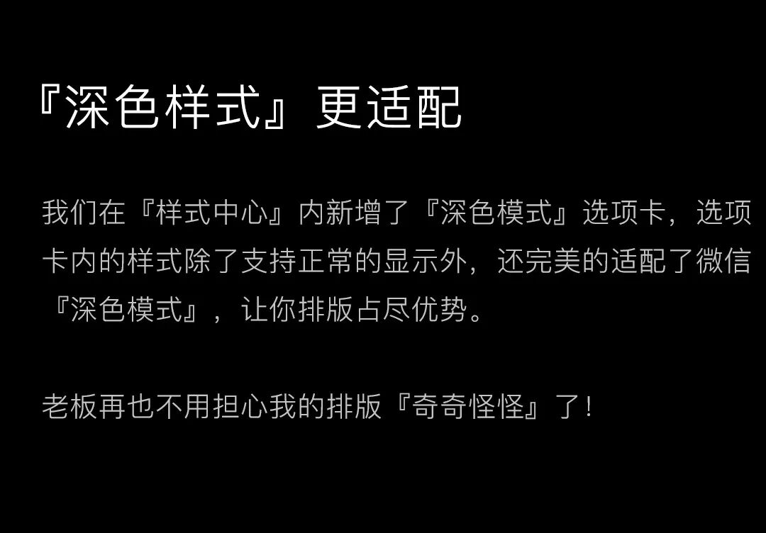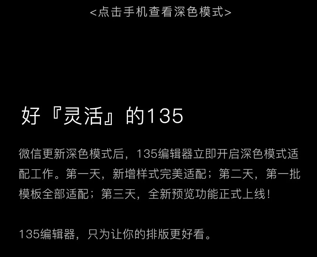 微信更新深色模式后,135編輯器立即開啟深色模式適配工作。