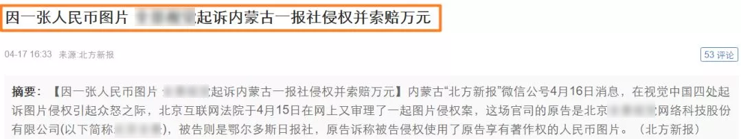 鄂爾多斯日報(bào)社在4月份被某圖片公司告上法庭,起訴原因是其官方微博引用了一張百度搜索未標(biāo)注版權(quán)的人民幣圖片,這張圖片被索賠一萬,并要求置頂?shù)狼浮?/span>
