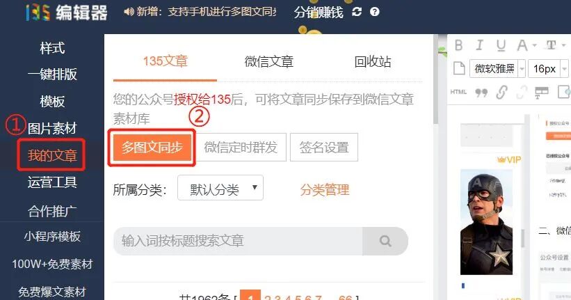 ? 可使用同步功能,一鍵同步單圖文、多圖文,避免排版好的文章出現(xiàn)錯誤!省時!