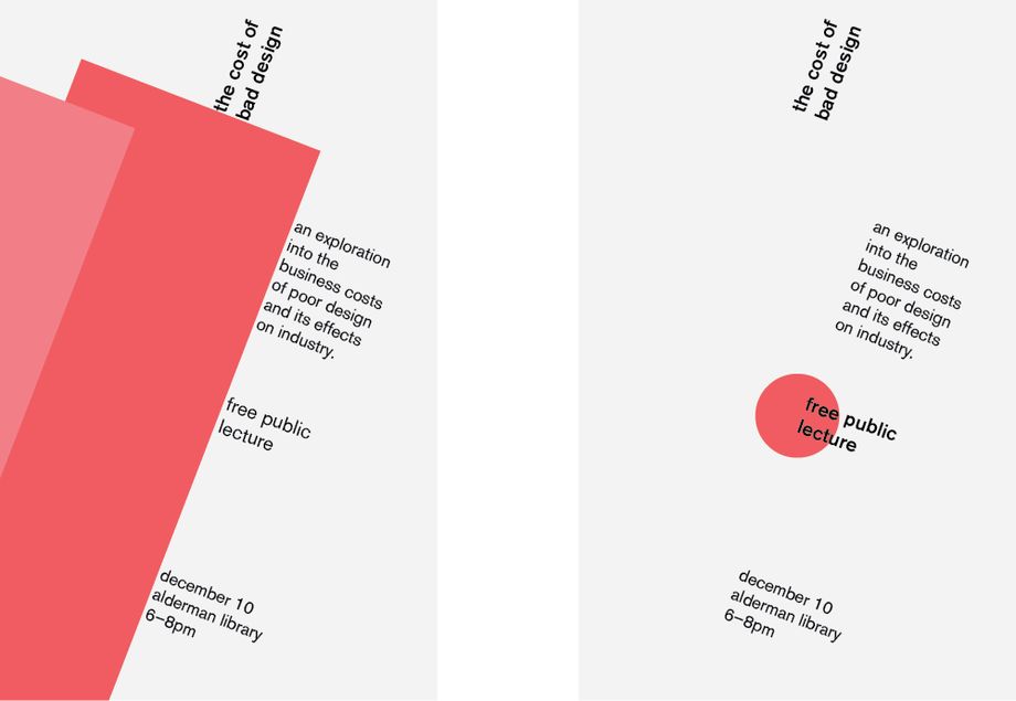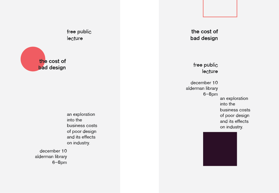 上面的例子利用矩形讓畫面有了“動(dòng)態(tài)”,雖然所有文字還是嚴(yán)格按照豎軸線分布,但整個(gè)版面明顯活潑了很多。