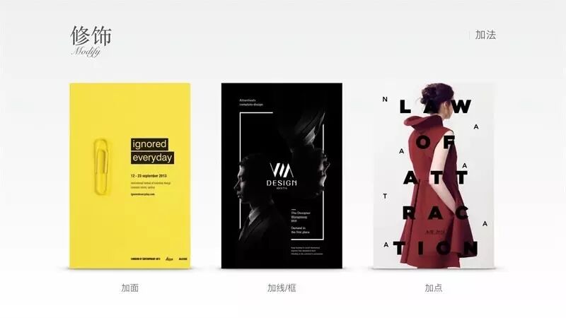 修飾上的加法:在基礎(chǔ)文案上添加元素,加強(qiáng)重點(diǎn),平衡版式。