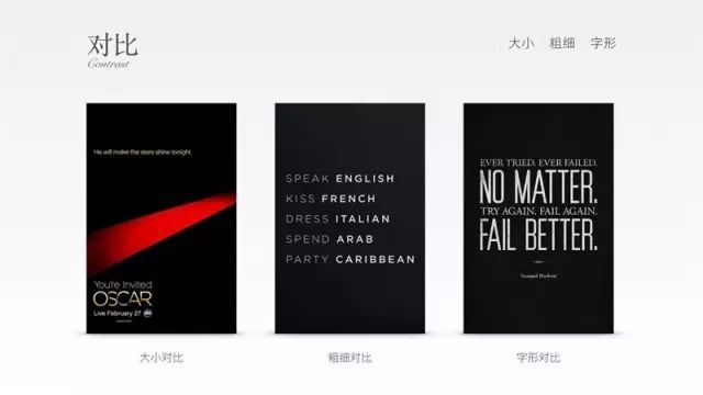 對比,就是在確定文案的空間后,讓文案本身的字體產(chǎn)生差異,形成對比。有對比,才有傷害,才有視覺沖擊力。