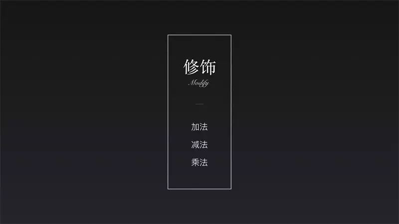 最后,修飾??捎锌蔁o,看畫面的需要。通過各種加法、減法、乘法進(jìn)行修飾,可以為單調(diào)的文字加上一些細(xì)膩的細(xì)節(jié)。