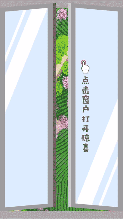 【樣式作用】:點(diǎn)擊窗戶,樣式兩側(cè)內(nèi)容會(huì)自動(dòng)滑開,顯示出底部的內(nèi)容,可以搭配無縫樣式制作出更多有趣味性的推文。