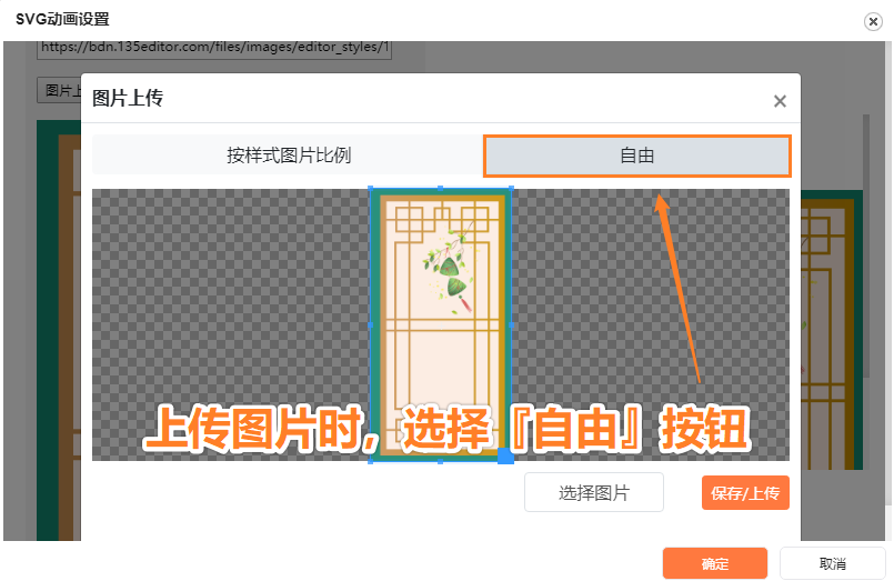 在更換左右兩側(cè)圖片時(shí),我們需要注意的是,在上傳圖片界面需要選擇『自由』進(jìn)行上傳,才會(huì)讓圖片更好的適配哦!