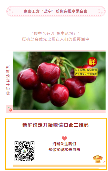 主題是櫻桃,所以三兒選擇了一張和櫻桃相關(guān)的圖片作為背景,并挑選了一個透明背景樣式,排版看起來就像擁有了兩個背景一樣,非常高級、有層次感。