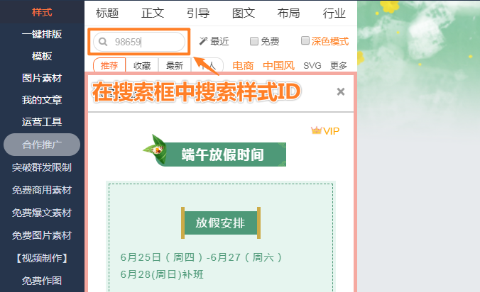 接下來三兒教你如何使用這個功能,我們先插入一個帶編號或是小標(biāo)題的樣式,這里我們拿『ID98659』的端午節(jié)樣式來舉例。