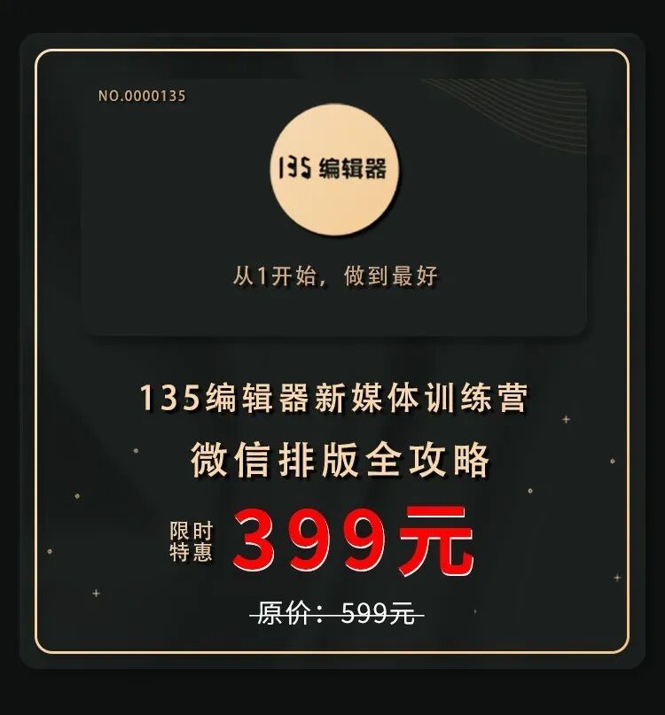 如果你看了這么多,你還是不知道該如何排版,依舊手足無(wú)措,這里有一個(gè)能夠教你快速排出好看且具風(fēng)格的排版教程——由135編輯器出品的《第十期新媒體排版訓(xùn)練營(yíng)》。