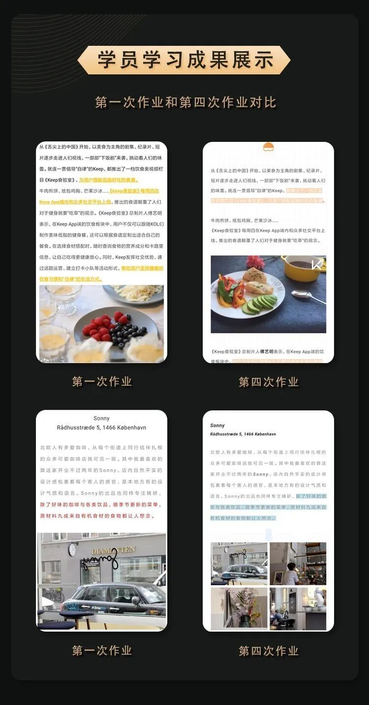 其實(shí)這還要從旺仔參加排版訓(xùn)練營(yíng)說(shuō)起,旺仔最初的排版狀態(tài),那也是拿上素材就腦袋空白,完全不知道從何下手。為了解決排版這個(gè)難題,她參加了我們第五期排版訓(xùn)練營(yíng);