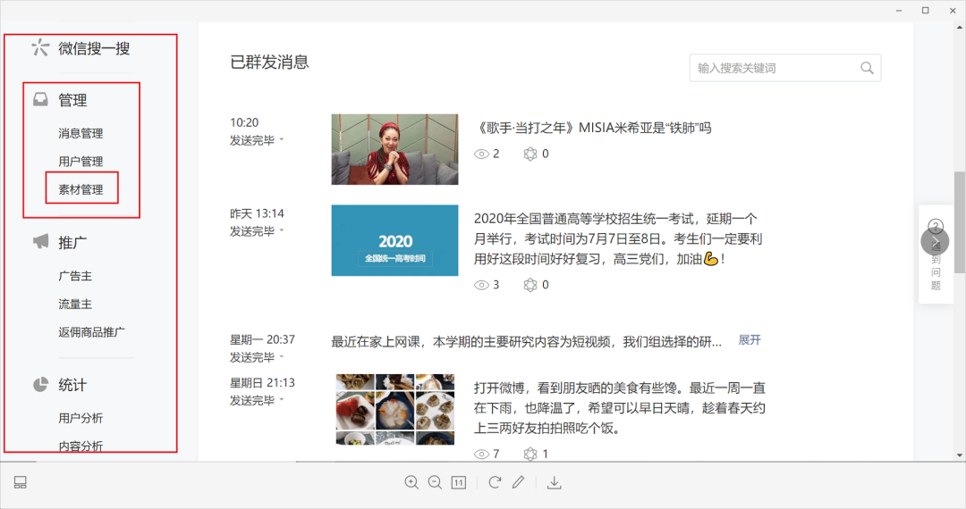 6.在這個(gè)界面可以看到所有的圖文消息,包括已經(jīng)發(fā)送的圖文消息,還有沒有發(fā)送的圖文消息。