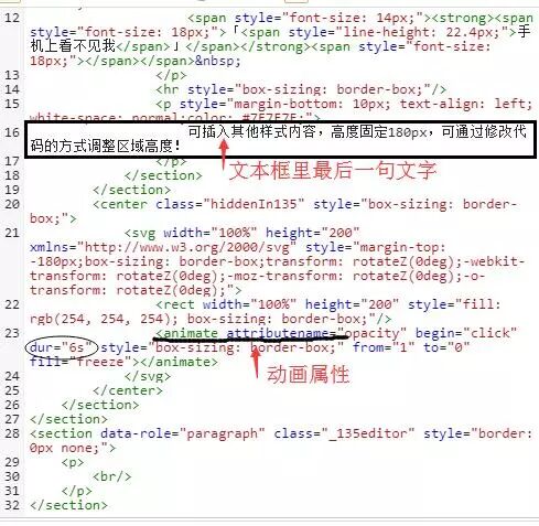 這個位置在哪里呢,簡單來講,就在文本框里的最后一句話的后面幾排,有個叫“animate attributename=”的這塊里面。