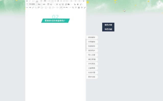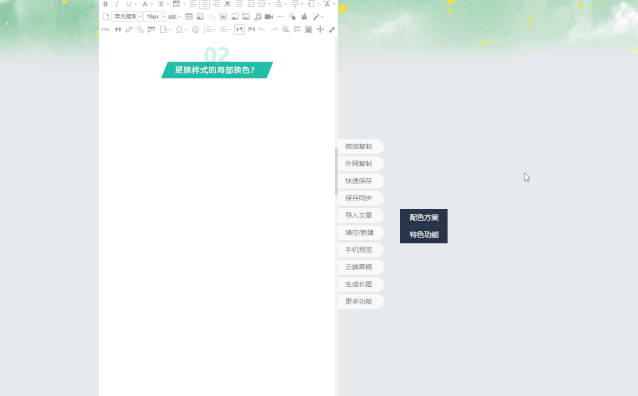 這個簡單,使用135編輯器的『配色方案』就可以做到啦!