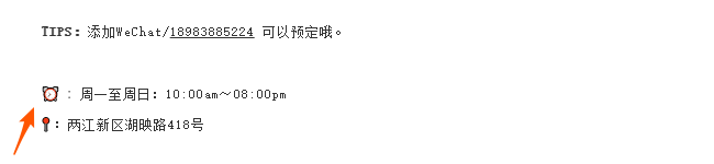 正文中還用到了許多emoji小符號(hào),為文章添加了不少趣味。比如在時(shí)間、地點(diǎn)對(duì)應(yīng)的信息前面加上時(shí)鐘、地點(diǎn)小元素。