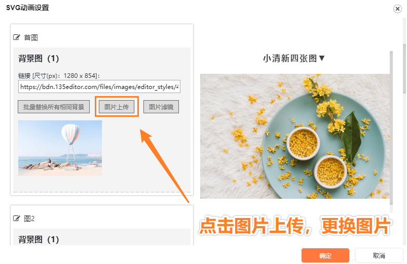 4.在動畫設置界面,我們就可以對樣式內的圖片進行更換了,朋友們可以點擊鏈接下方的『圖片上傳』按鈕上傳圖片。