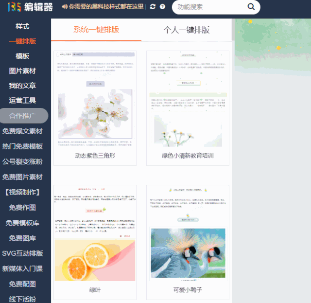 我們一般是推薦大家直接使用我們的『系統(tǒng)一鍵排版』模板,因?yàn)樵凇合到y(tǒng)一鍵排版』中有許多系統(tǒng)的現(xiàn)成的模板可以供大家使用。