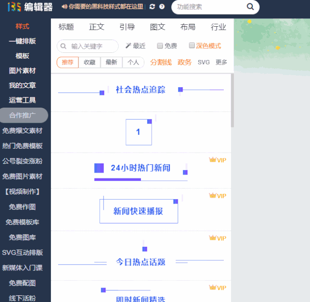 一鍵排版是135編輯器為新媒體胖友們準(zhǔn)備的獨(dú)家快速排版工具。在135編輯器左側(cè)菜單欄即可找到『一鍵排版』。