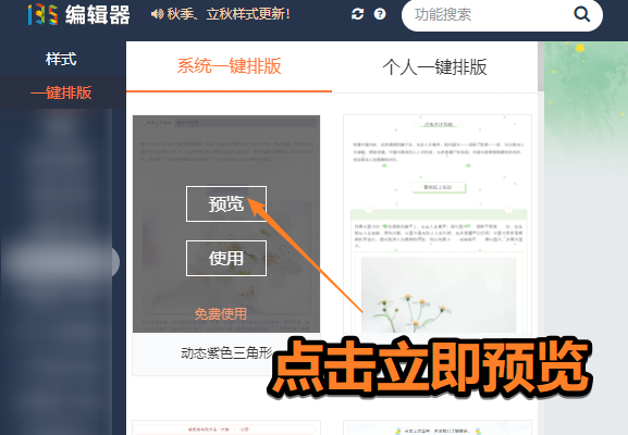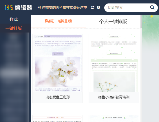 『一鍵排版』分為『系統(tǒng)一鍵排版』和『個(gè)人一鍵排版』兩個(gè)版塊。