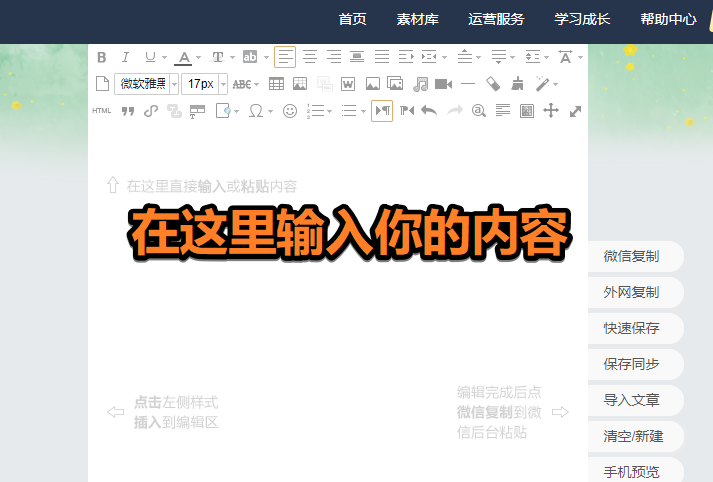 1.在編輯頁面輸入你的內(nèi)容,或者直接導(dǎo)入你的文章。