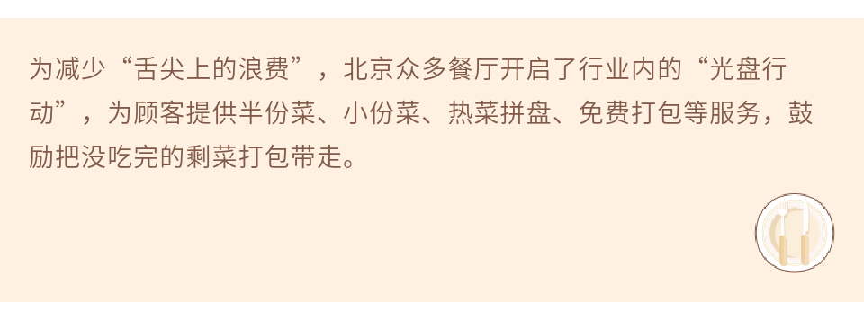 在外就餐聚餐時,采取N-1點餐模式,即點菜數(shù)量為“用餐人數(shù)減1”做到理性消費、文明用餐;吃多少點多少,使用公筷公勺,上桌的飯菜盡量吃完,吃不完的打包帶走,自覺踐行“光盤行動”;購買外賣食品要注意適度適量,不貪多、不剩余、不隨意丟棄,以自身的示范行動帶動更多人踐行節(jié)儉節(jié)約新風尚。
