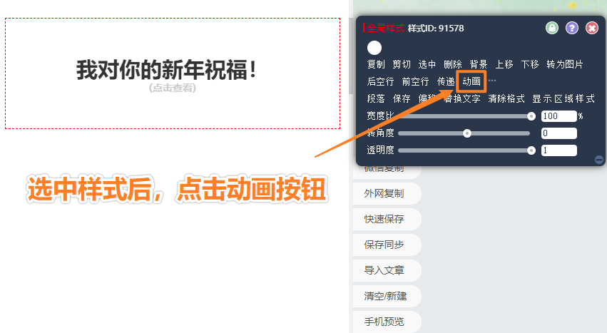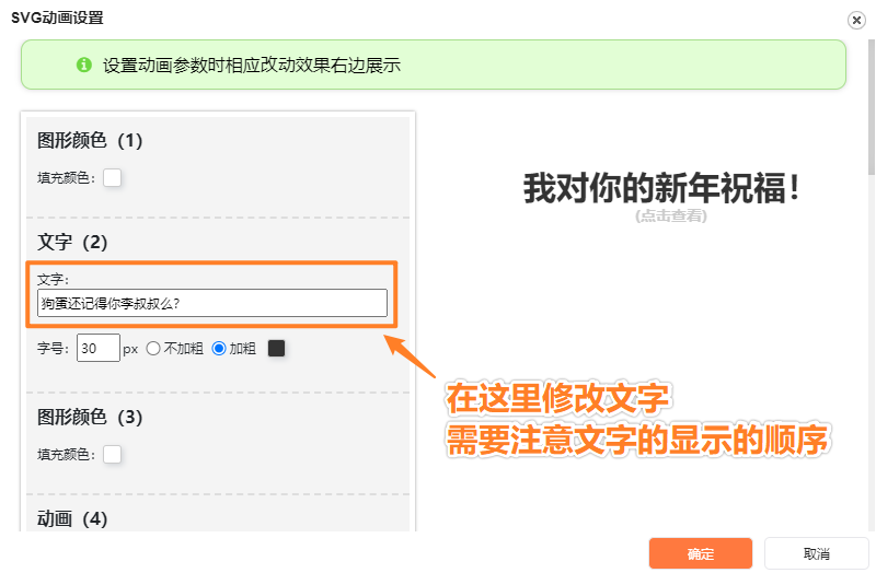 4.在動畫設置界面,我們就可以對樣式內的文字進行更換了,胖友們可以在文字編輯區(qū)內對文字進行替換。