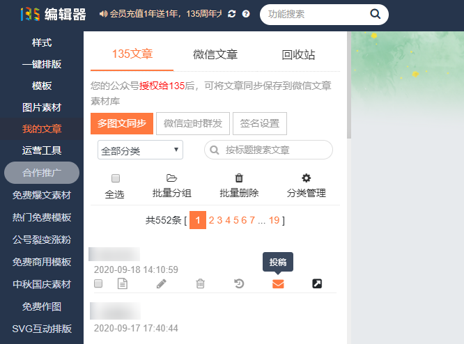點(diǎn)擊【135編輯官網(wǎng)】——點(diǎn)擊編輯頁面——【我的文章】—【投稿】