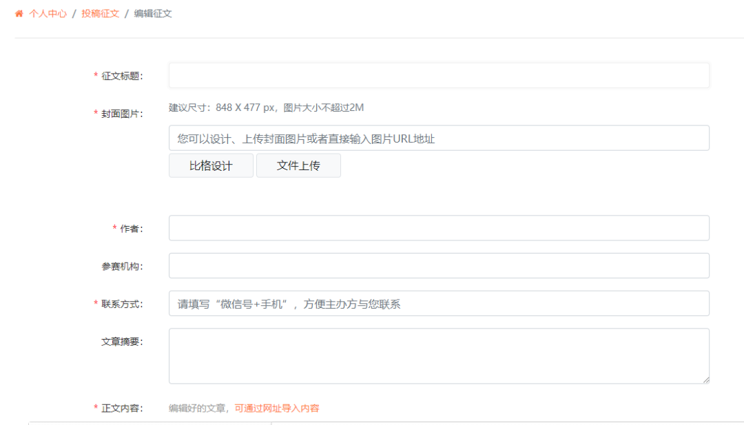 頁面跳轉(zhuǎn)到【編輯征文】頁面,大家就可以編輯自己的投稿文章了。