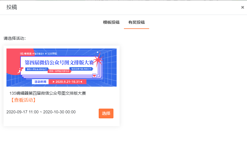 在彈出的彈窗中選擇【有獎(jiǎng)投稿】,點(diǎn)擊【選擇】,即可成功投稿參賽。