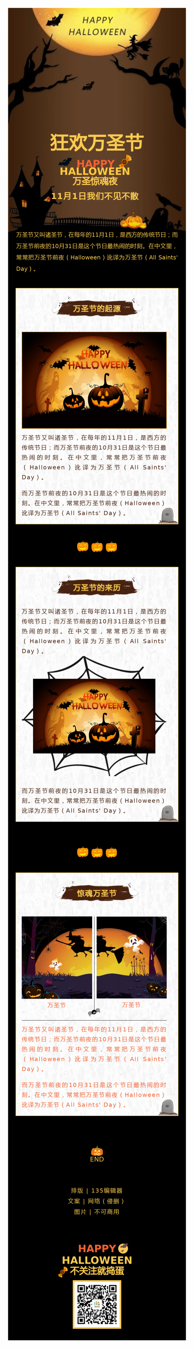 這就是本期的微信公眾號萬圣節(jié)排版素材,以及萬圣節(jié)模板演示介紹,大家可以根據(jù)自己的需求去135編輯器使用這些素材。