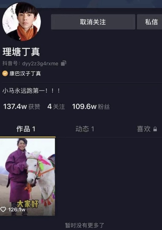 11月19日,憑借原生態(tài)純真帥氣的笑臉走紅網(wǎng)絡的藏族小伙丁真入駐抖音,并發(fā)布首條視頻。截至發(fā)稿,這條視頻點贊量已超百萬,抖音號“理塘丁真”也在當天漲粉百萬。