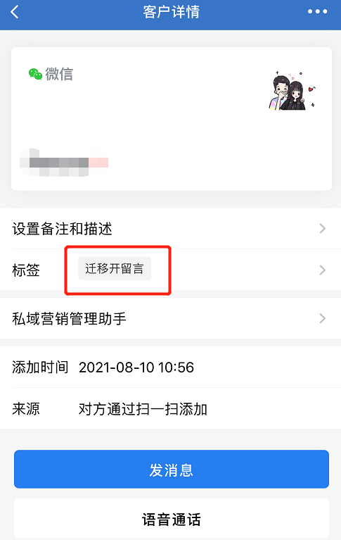 在后臺(tái)設(shè)置過標(biāo)簽,客戶掃碼成功添加好友后會(huì)自動(dòng)打上標(biāo)簽,方便我們了解哪些客戶是從哪個(gè)渠道標(biāo)簽下添加的。