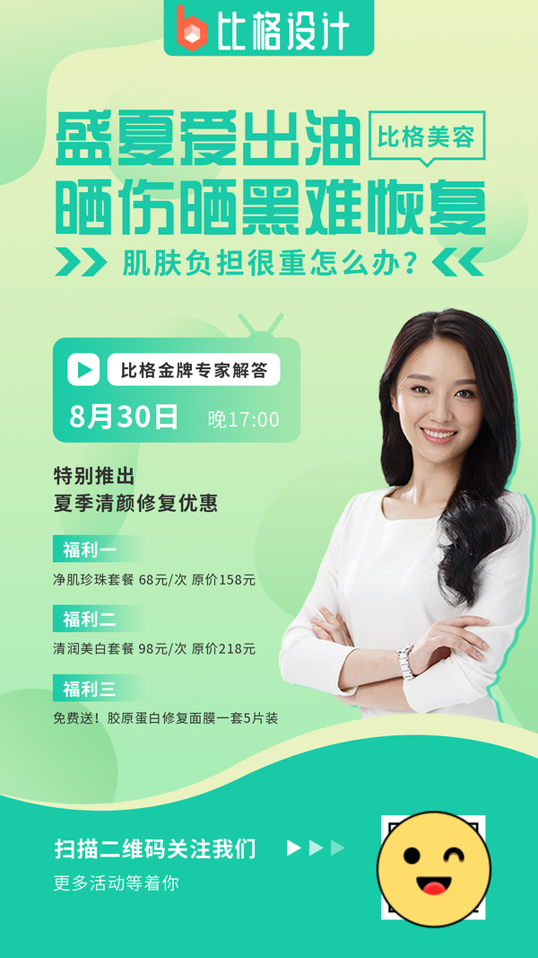 6、醫(yī)療健康美容護(hù)膚簡(jiǎn)約清新綠色漸變?nèi)宋锘顒?dòng)手機(jī)海報(bào)